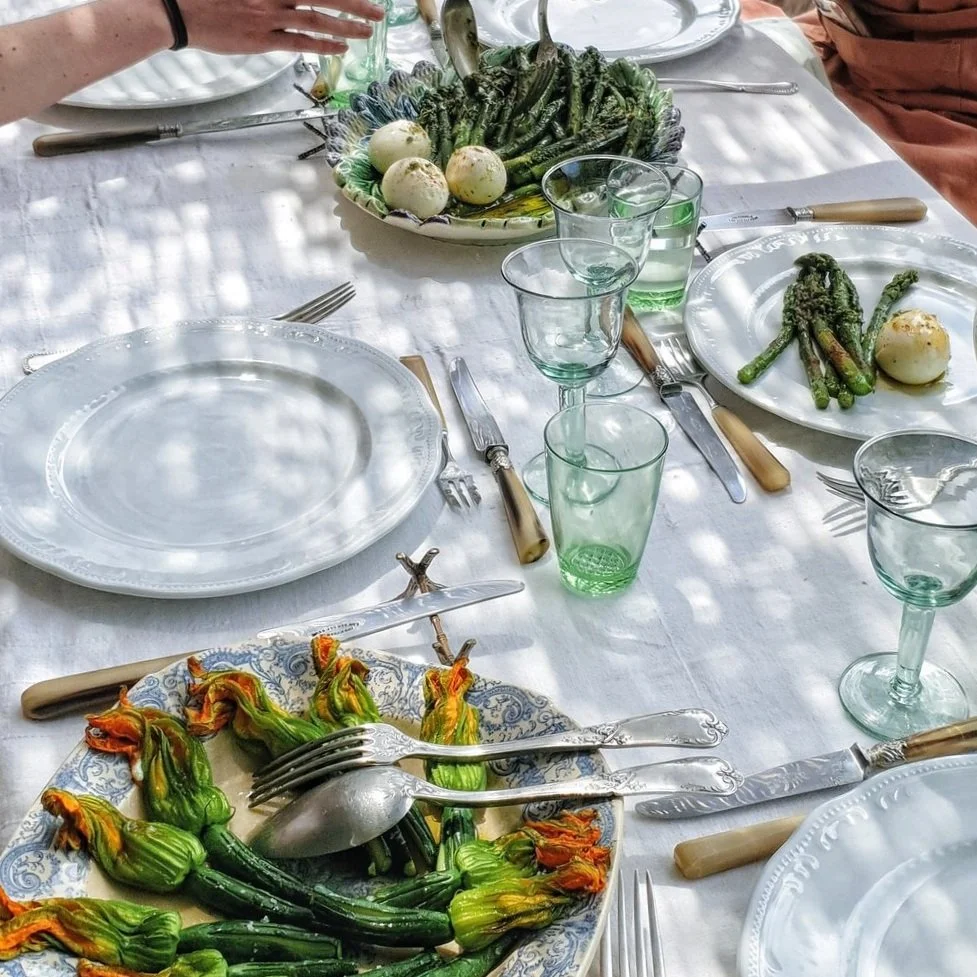 I offer private cooking classes for 2 or 3 people in my small kitchen in Goult. If you are an adventurous foodie, this experience is for you. We'll do the market, and I’ll get you to know my favourite farmers. We’ll choose the best ingredients and the menu together. Back home, we’ll have some refreshments before starting cooking, and sometimes we do it under the trees, while we have an aperitif like in the photo. This is a full-day experience, as we indulge longer in chatting and eating.